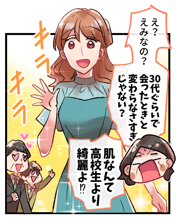 学生の頃と変わっていない肌のきめ細かわ。シミもシワも一切ないので、学生の時より綺麗まである…!!