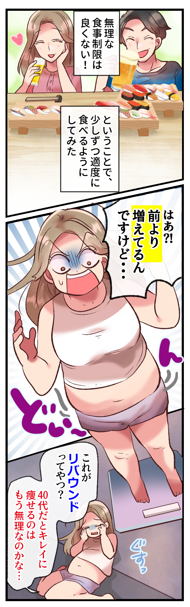 だから食事制限をやめたり、運動をやめると以前よりリバウンドという悪循環に陥ってしまうんですね。