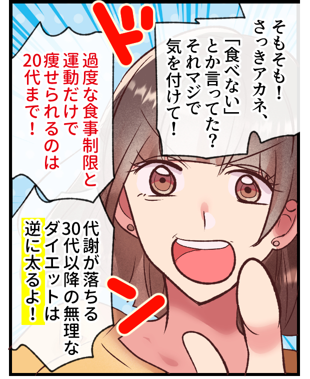 30代に入ると、過度な食事制限や運動をすると体が危険を察知して冬眠状態に入ってしまうんです。
