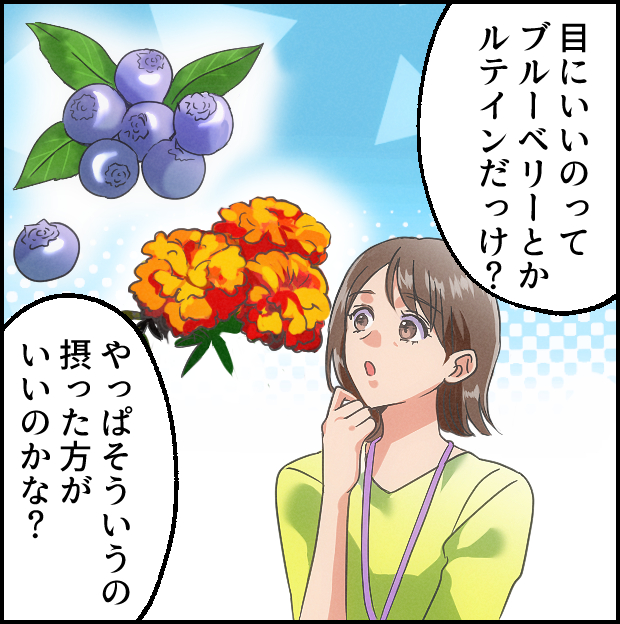 一般的に目に良いと言われているのが、ブルーベリーやルテイン